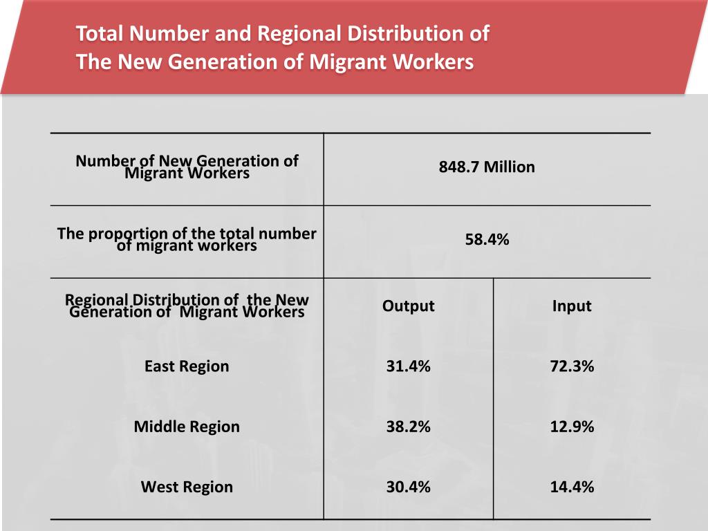 Total Number and Regional Distribution of The New Generation of Migrant Workers