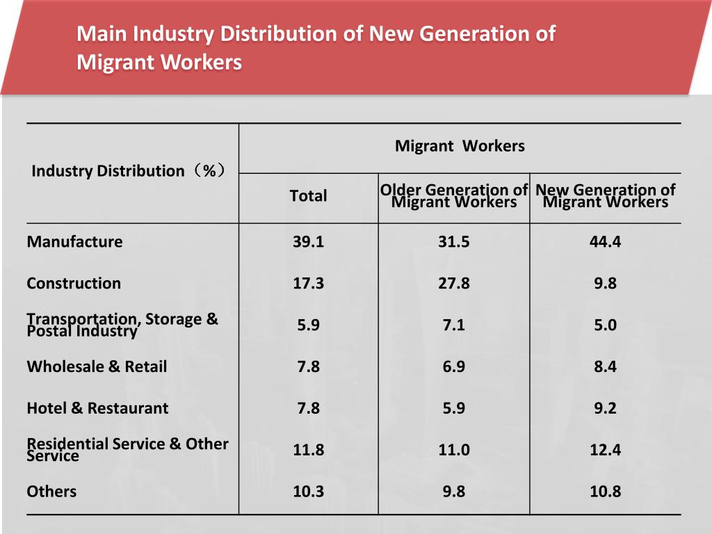 Main Industry Distribution of New Generation of Migrant Workers