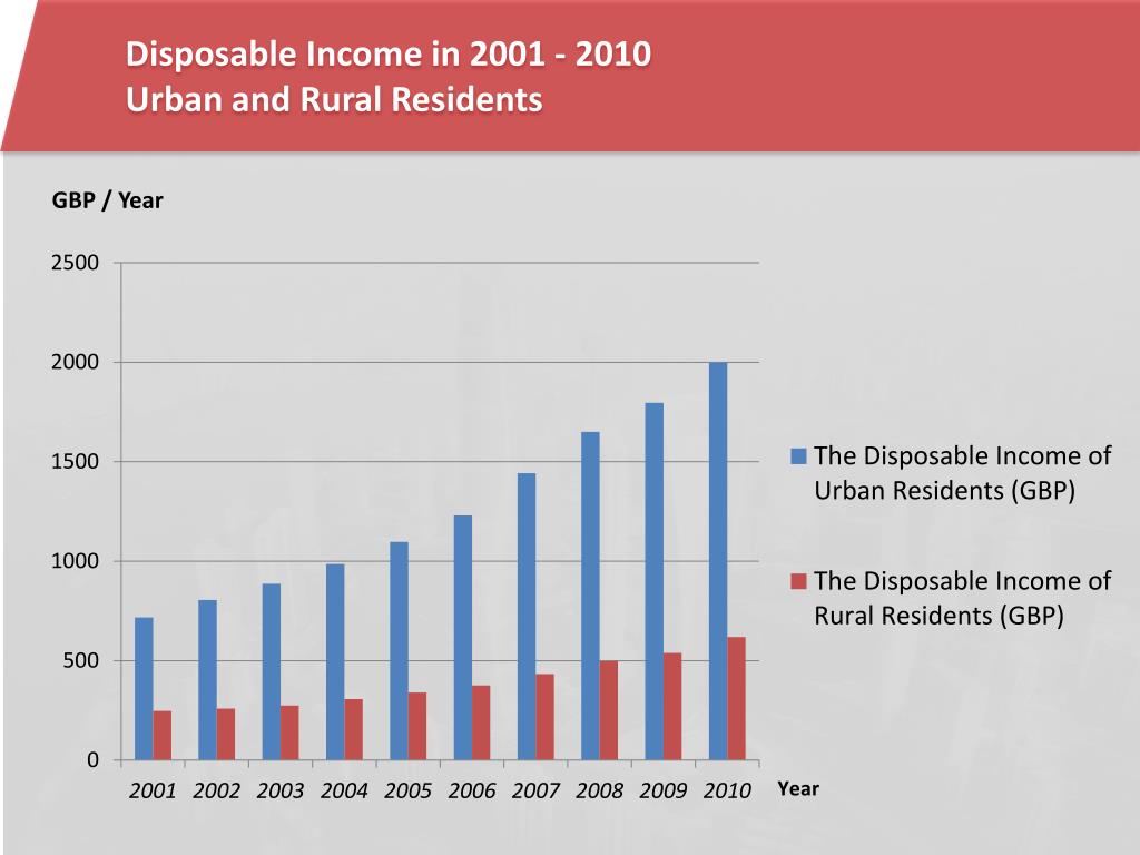 Disposable Income in 2001 - 2010 Urban and Rural Residents GBP / Year