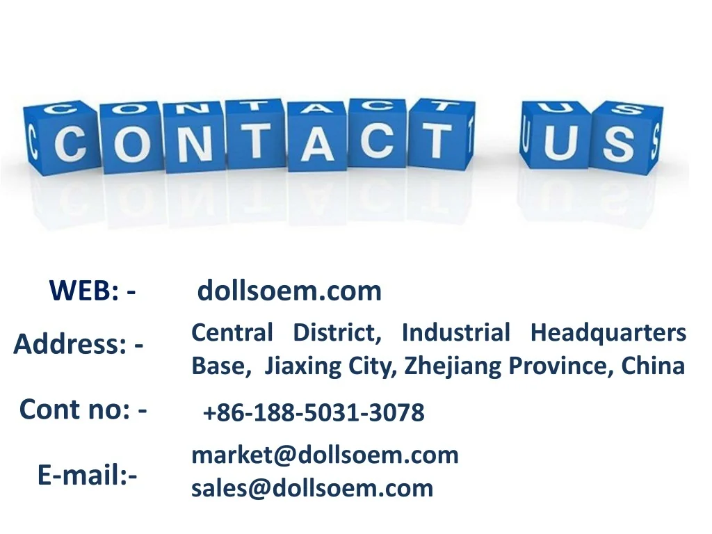 WEB: - dollsoem.com Address: - Central District, Industrial Headquarters Base, Jiaxing City, Zhejiang Province, China Cont no: - +86-188-5031-3078 market@dollsoem.com sales@dollsoem.com E-mail:-