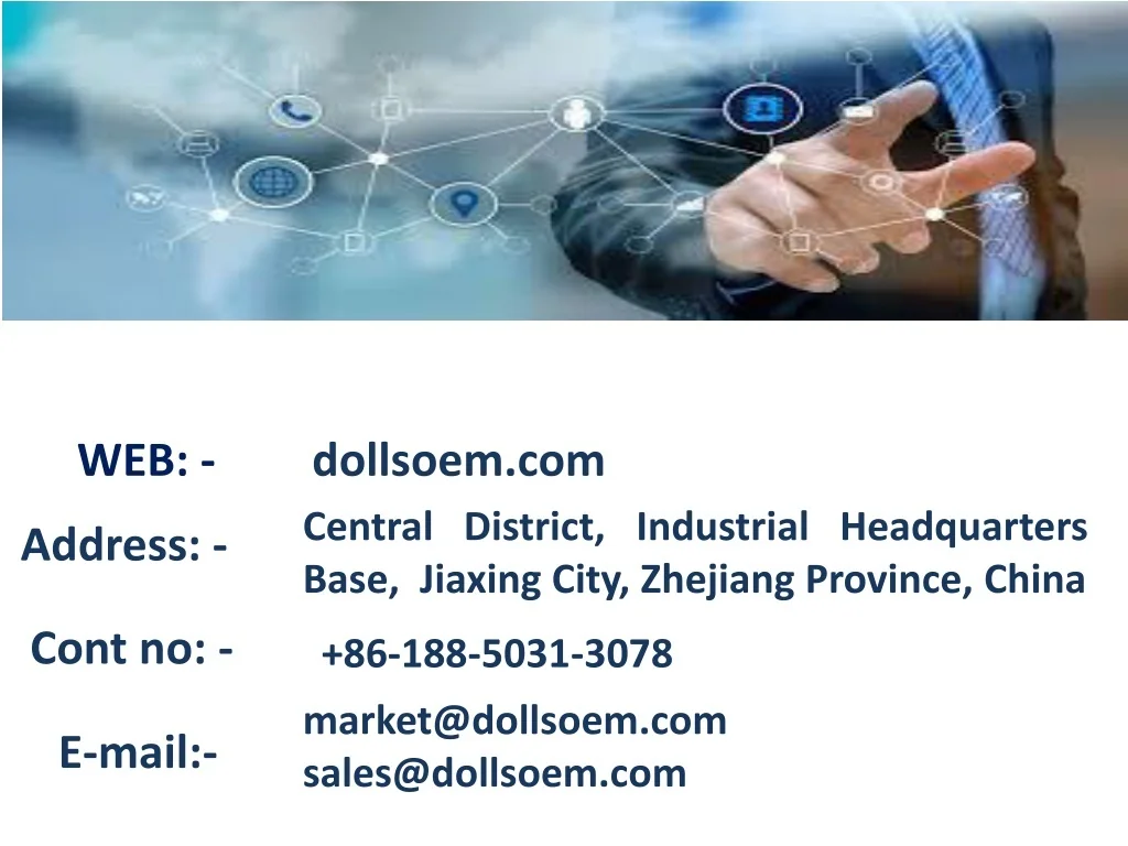 WEB: - dollsoem.com Address: - Central District, Industrial Headquarters Base, Jiaxing City, Zhejiang Province, China Cont no: - +86-188-5031-3078 market@dollsoem.com sales@dollsoem.com E-mail:-