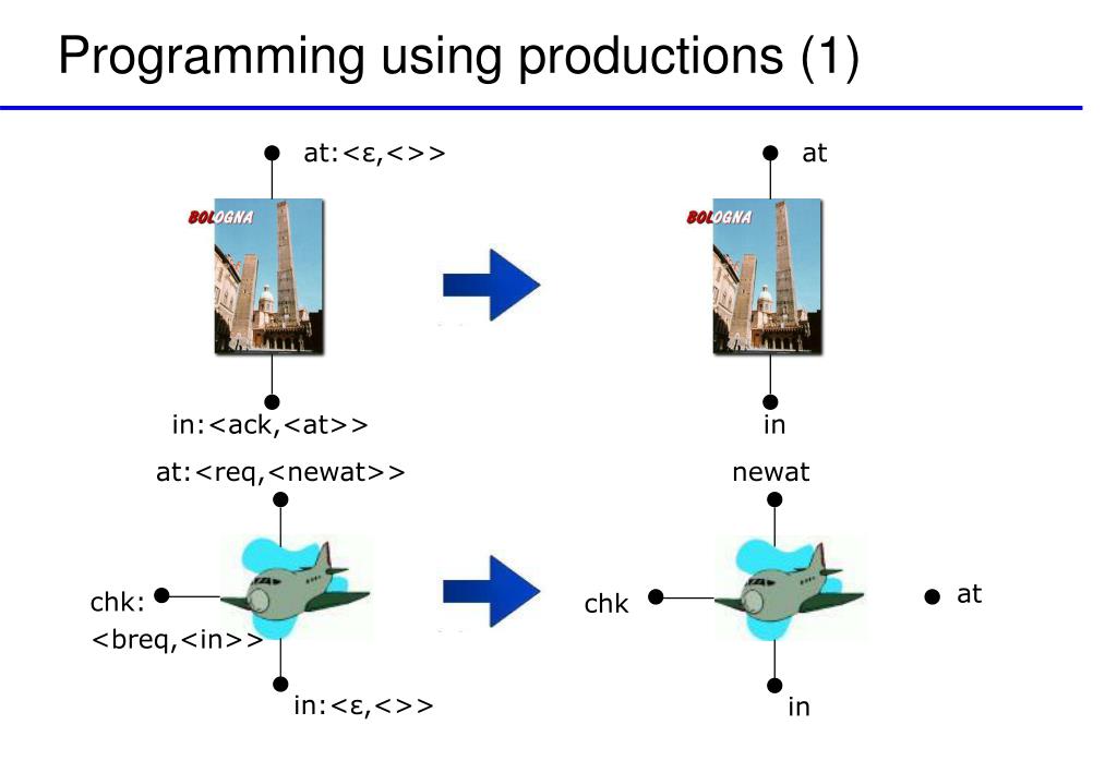 at in newat at chk in Programming using productions (1) at:<ε,<>> in:<ack,<at>> at:<req,<newat>> chk: <breq,<in>> in:<ε,<>>