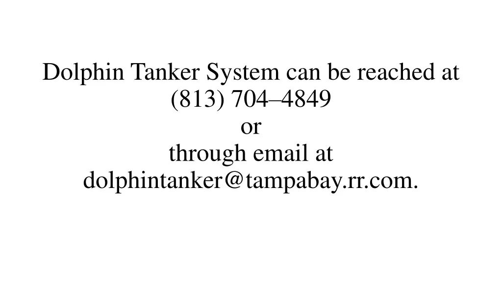 Dolphin Tanker System can be reached at (813) 704–4849 or through email at dolphintanker@tampabay.rr.com.