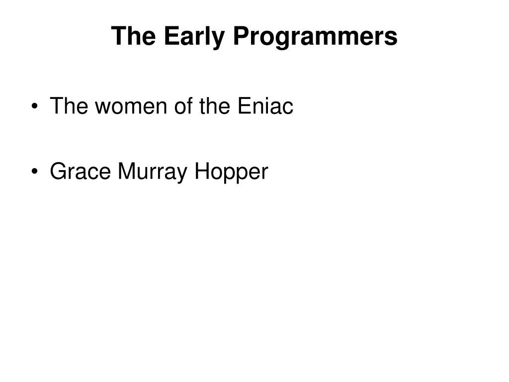 The Early Programmers • The women of the Eniac • Grace Murray Hopper