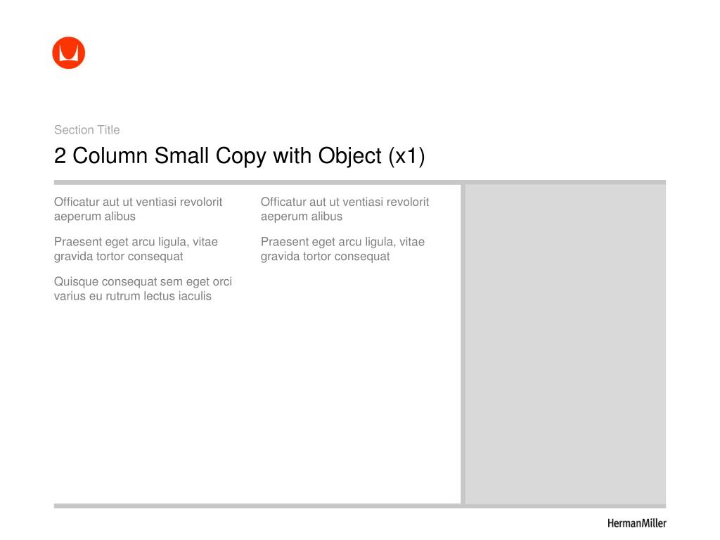Medium Copy with Object (x2) • Officatur aut ut ventiasi revolorit aeperum alibus • Praesent eget arcu ligula, vitae gravida tortor consequat • Quisque consequat sem eget orci varius eu rutrum lectus iaculis • Section Title