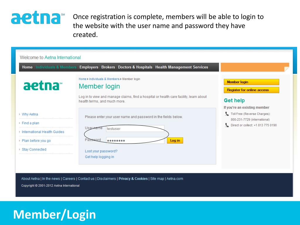 Choose ‘Aetna International Member’ from the drop down box Member/Registration