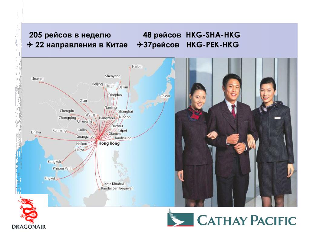 205 рейсов в неделю48 рейсов HKG-SHA-HKG 22 направления в Китае37рейсов HKG-PEK-HKG