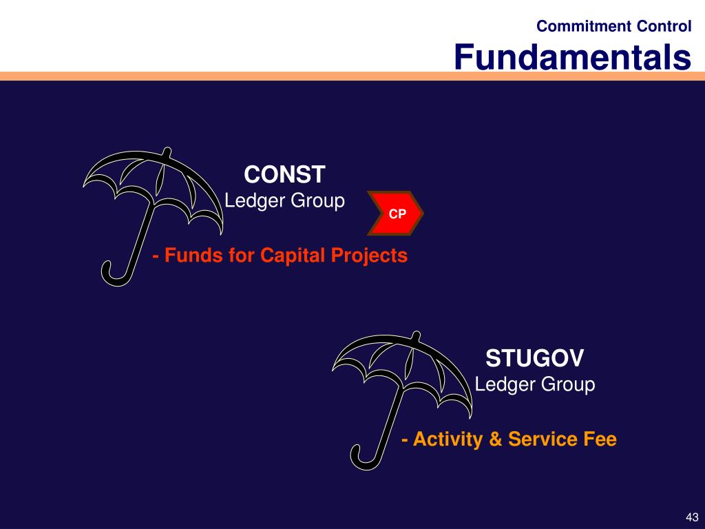 CONSTLedger Group - Funds for Capital Projects STUGOVLedger Group - Activity & Service Fee Commitment ControlFundamentals