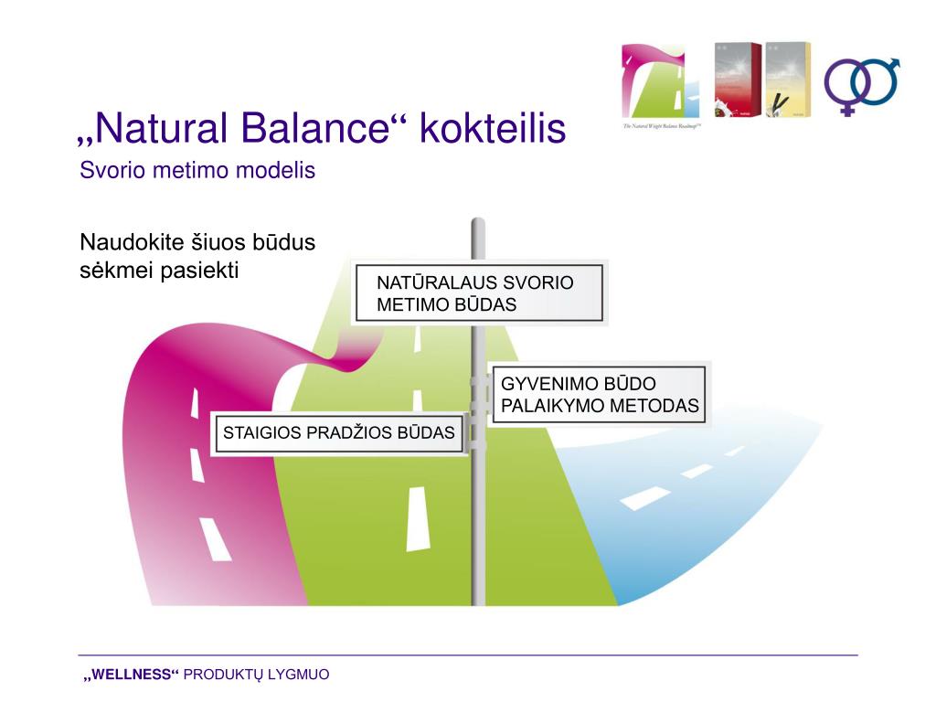 „Natural Balance“kokteilis Svorio metimo modelis • Naudokite šiuos būdus • sėkmei pasiekti NATŪRALAUS SVORIO METIMO BŪDAS GYVENIMO BŪDO PALAIKYMO METODAS STAIGIOS PRADŽIOS BŪDAS „WELLNESS“PRODUKTŲ LYGMUO