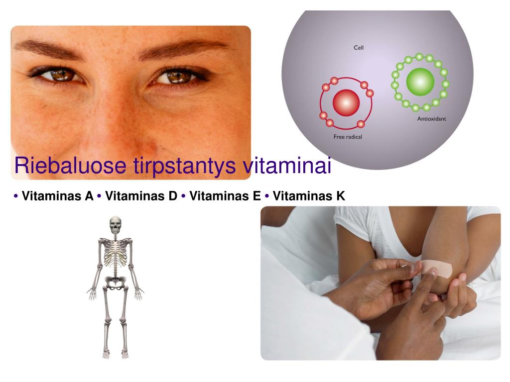 Riebaluose tirpstantys vitaminai • Vitaminas A • Vitaminas D • Vitaminas E • Vitaminas K