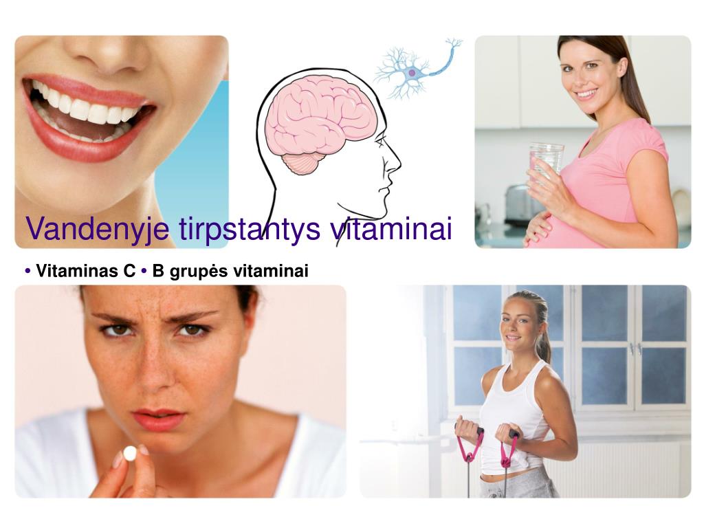 Vandenyje tirpstantys vitaminai • Vitaminas C • B grupės vitaminai Water-soluble vitamins • Vitamin C • The B vitamins