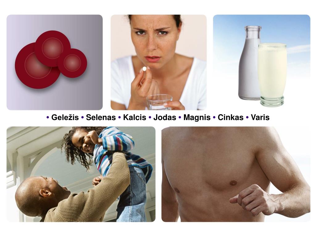 •Geležis• Selenas•Kalcis•Jodas•Magnis•Cinkas•Varis • Iron • Selenium • Calcium • Iodine • Magnesium • Zinc • Copper