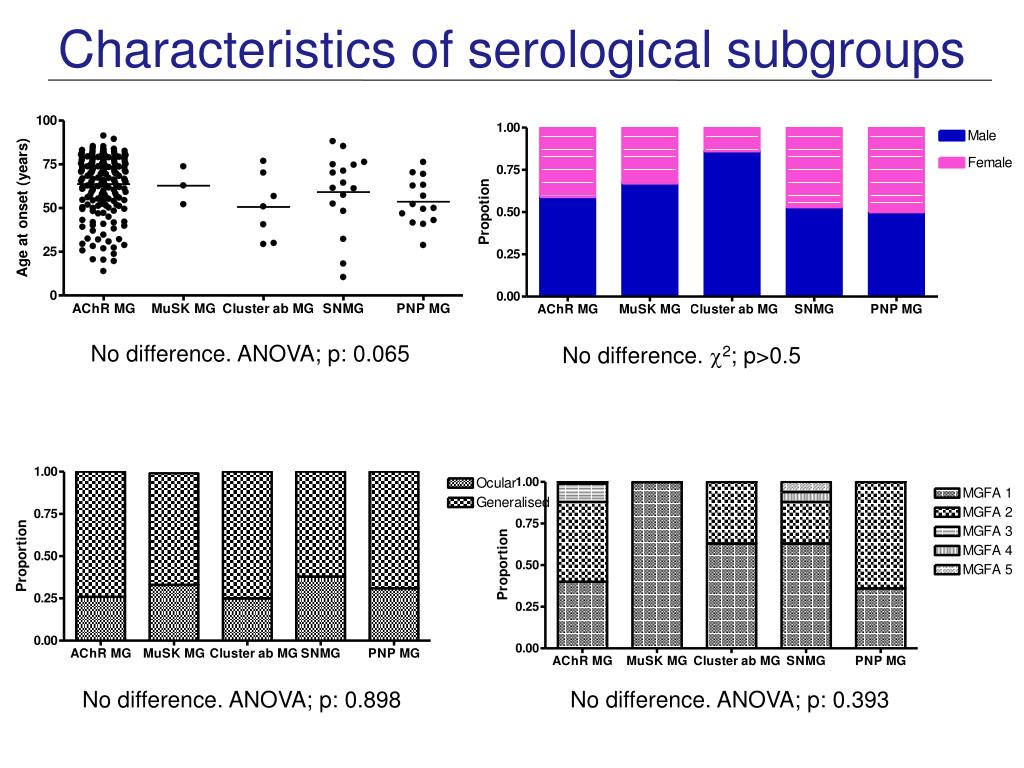 Characteristics of serological subgroups No difference. ANOVA; p: 0.065 No difference. 2; p>0.5 No difference. ANOVA; p: 0.898 No difference. ANOVA; p: 0.393
