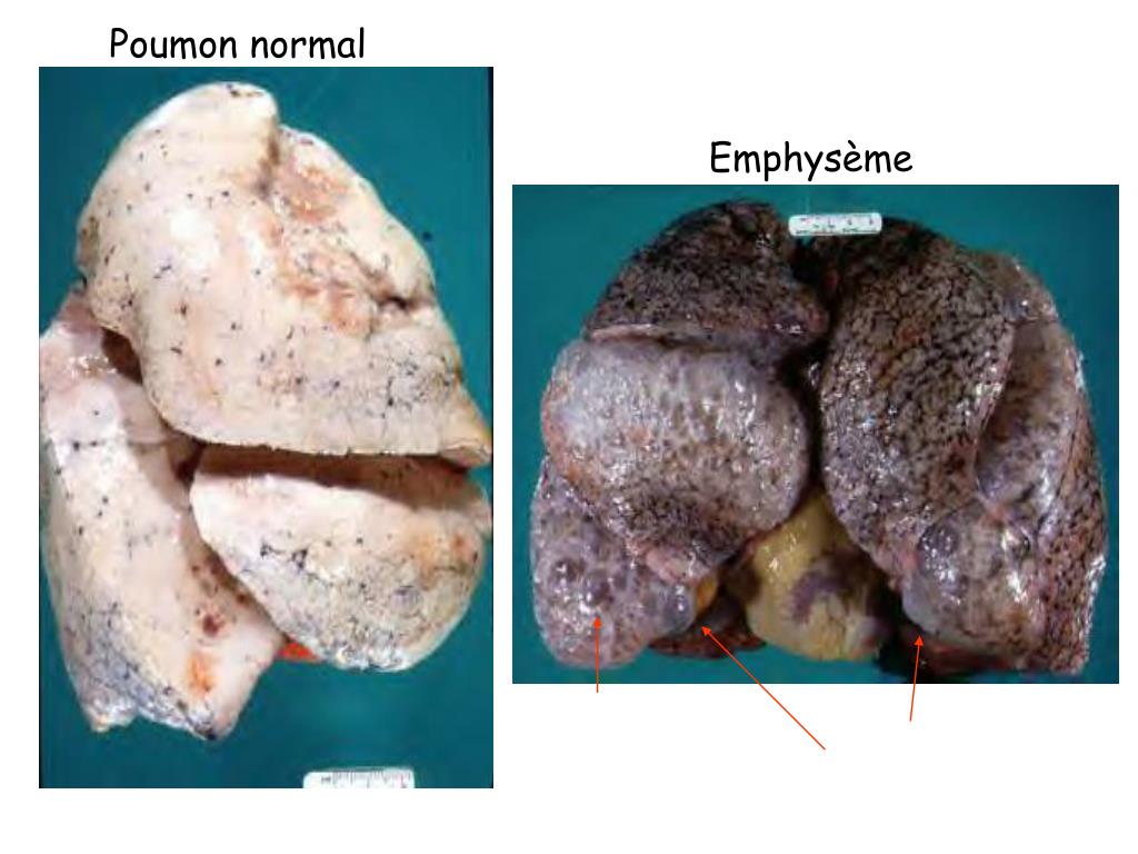 Définition : • Emphysème : élargissement anormal des espaces aériens au-delà des bronchioles terminales associé à une destruction des parois alvéolaires → définition anatomique • BPCO : maladie caractérisée par une obstruction chronique des VA, non complètement réversible, progressive, associée à une réaction inflammatoire anormale et à des conséquences systémiques en réponse à des toxiques inhalés → définition fonctionnelle