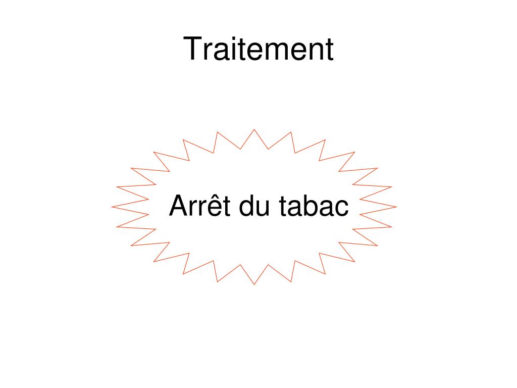 Traitement : l’arrêt du tabac • Seule mesure permettant l’arrêt du déclin de la FV • significative de l’excès de mortalité après 10 ans de sevrage continu