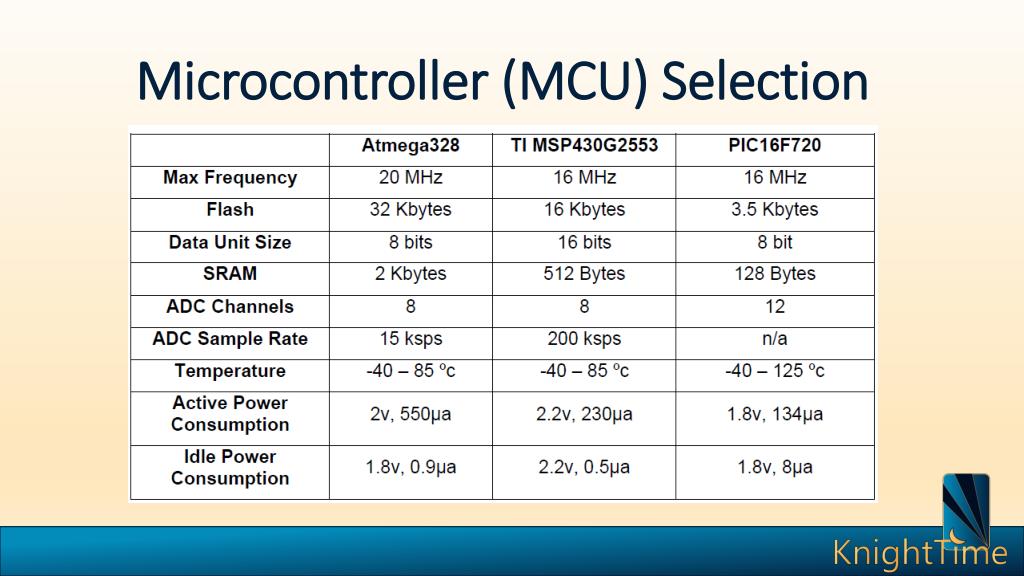 MSP430 • MSP430 provides a good balance of features with low power consumption. • Useful for testing sensors in the same development environment. • MCU from board to socket • ICSP (In-Circuit Serial Programming) is easy: only 2 pins required.