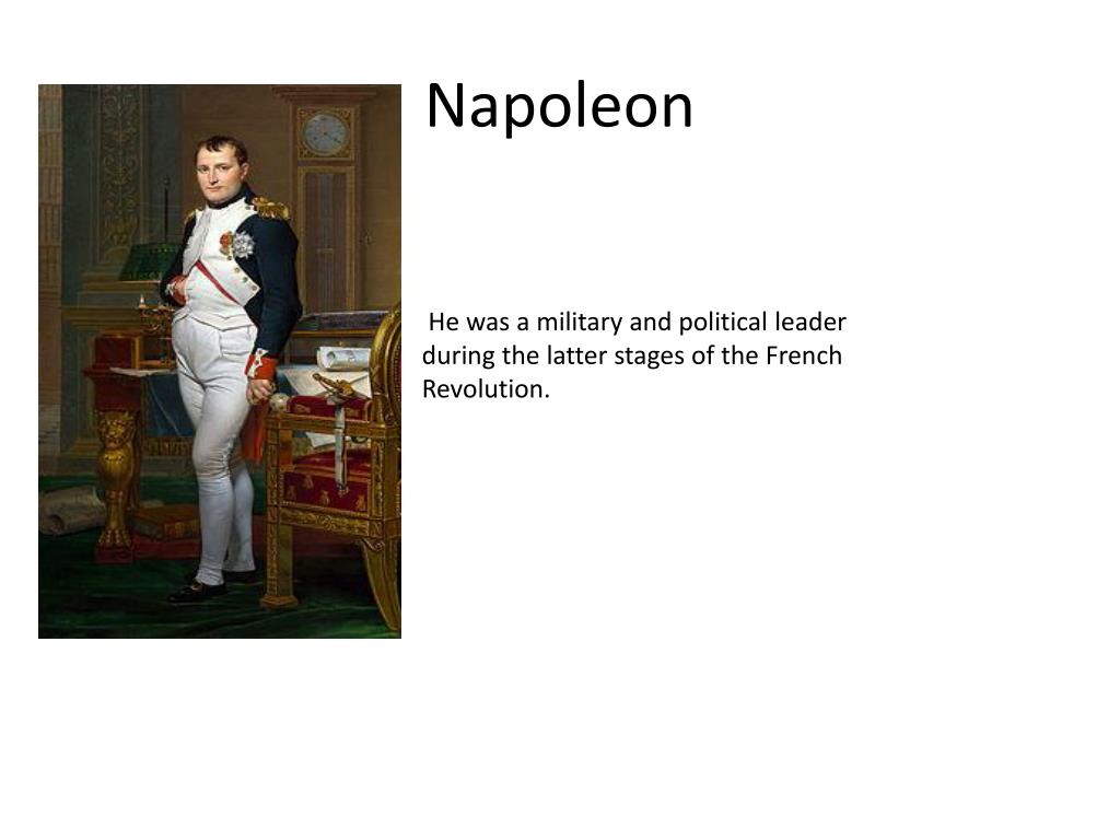 Napoleon He was a military and political leader during the latter stages of the French Revolution.