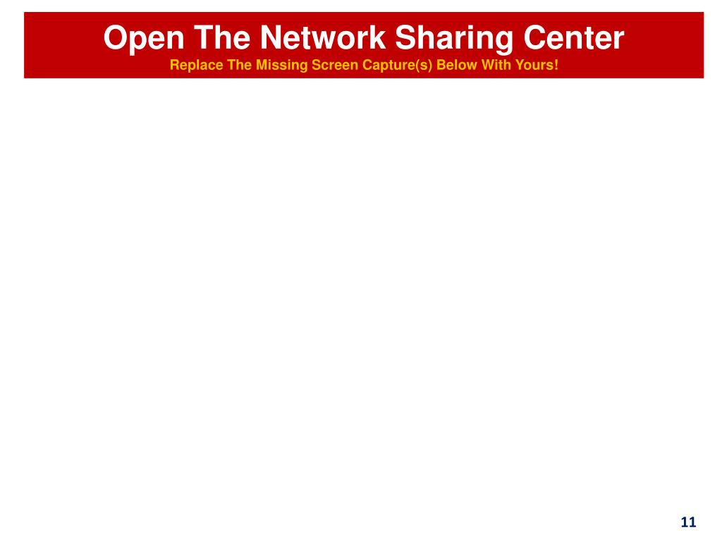 Open The Network Sharing CenterReplace The Missing Screen Capture(s) Below With Yours!
