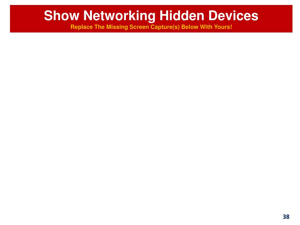Show Networking Hidden DevicesReplace The Missing Screen Capture(s) Below With Yours!