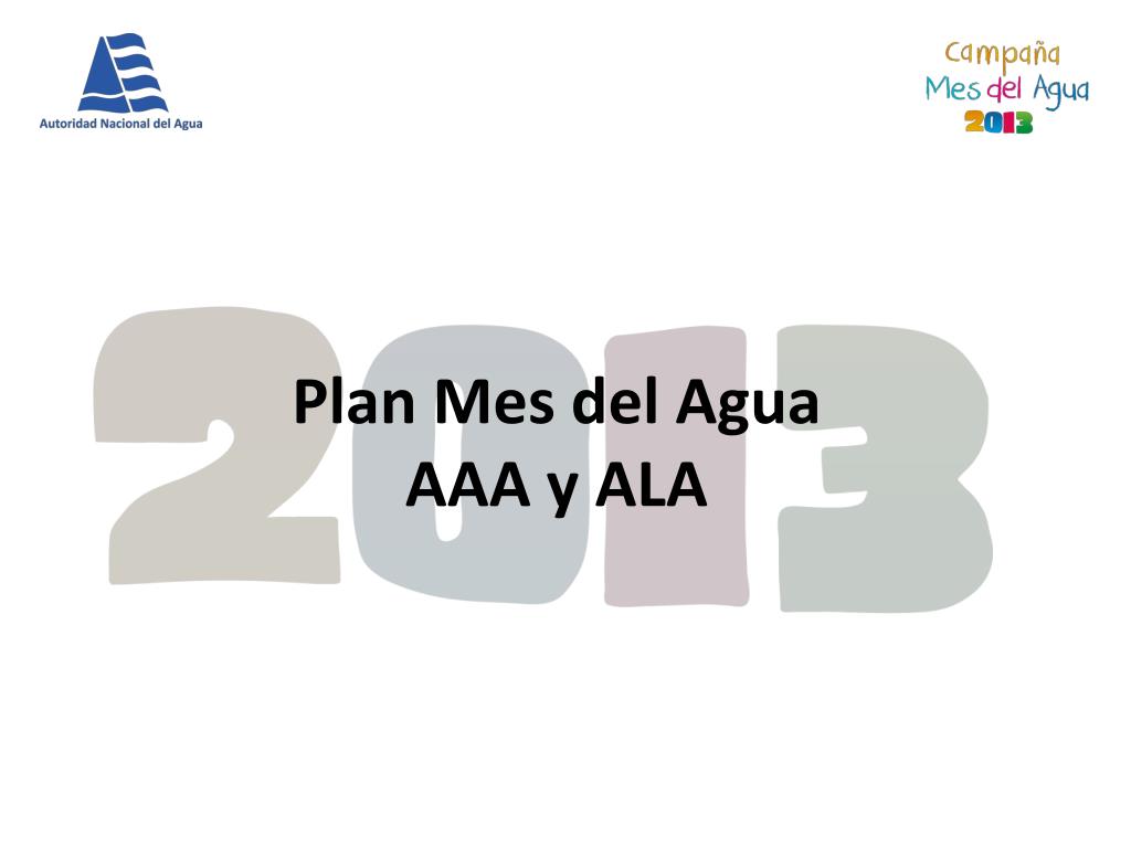 Plan Mes del Agua AAA y ALA. 1. Cada oficina revisará el Plan del Mes del Agua de la sede central , principalmente en cuando a objetivos y mensajes. Cada AAA y ALA propondrá el desarrollo de actividades en su ámbito durante el mes de marzo- “Mes del Agua”.