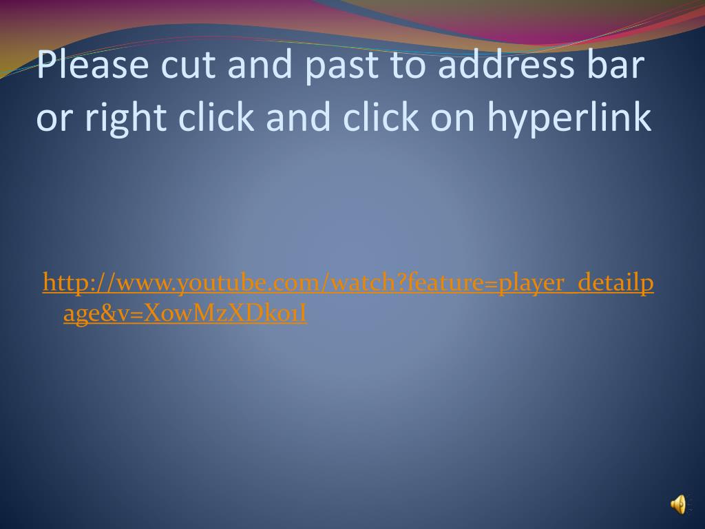 Please cut and past to address bar or right click and click on hyperlink http://www.youtube.com/watch?feature=player_detailpage&v=XowMzXDko1I