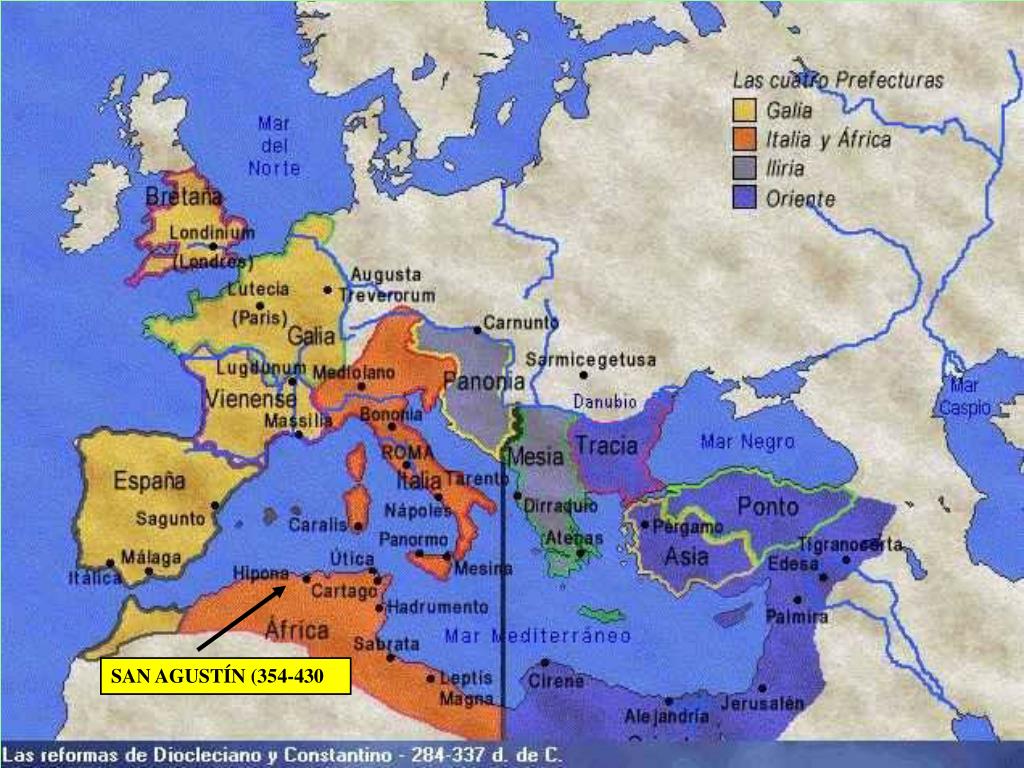 5.-LA INVASIÓN DE LOS BÁRBAROS. LA DECADENCIA DEL IMPERIO ROMANO. Agustín vivió una época de grandes cambios. Escribió La Ciudad de Dios en el 413, 3 años después del saqueo de Roma por Alarico. Intento refutar a aquellos que decían que el responsable de la decadencia del Imperio Romano era el cristianismo.
