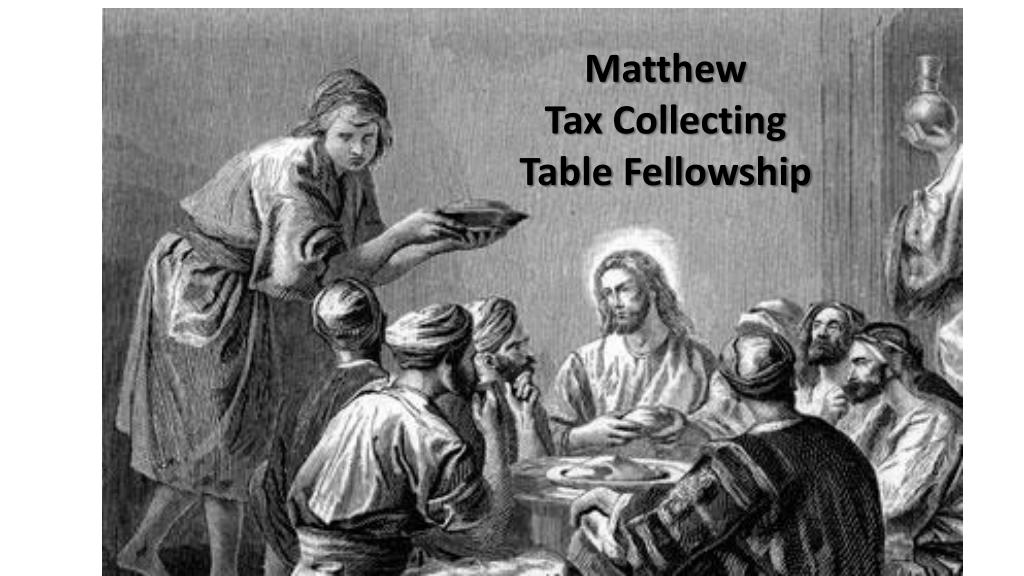 Matthew 9:9-11 As Jesus was walking along, he saw a man called Matthew sitting at the tax booth; and he said to him, “Follow me.” And he got up and followed him. And as he sat at dinner in the house, many tax collectors and sinners came and were sitting with him and his disciples. When the Pharisees saw this they said to his disciples, “Why does your teacher eat with tax collectors and sinners?”