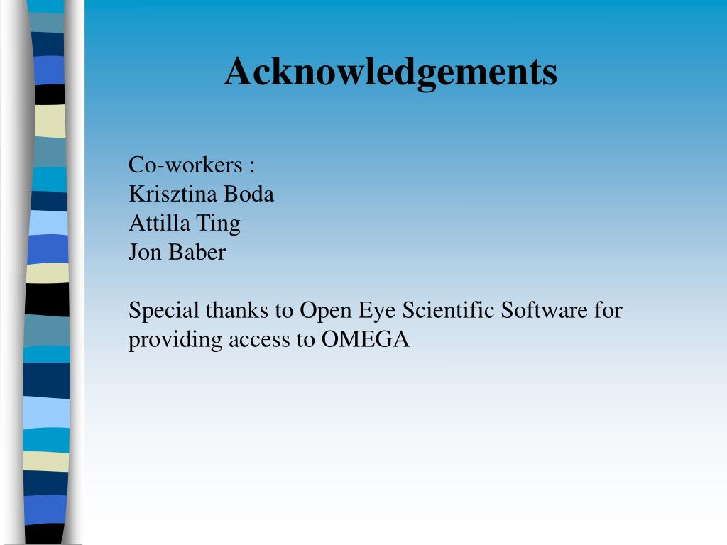 Acknowledgements Co-workers : Krisztina Boda Attilla Ting Jon Baber Special thanks to Open Eye Scientific Software for providing access to OMEGA