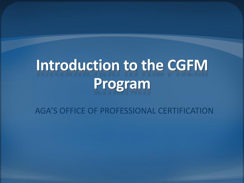 Introduction to the CGFM Program AGA’S Office of professional certification