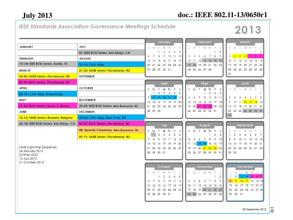 Friday Agenda Item 6.3 Future Venues -2013 2013 # 137 January 13-18, 2013 - --Hyatt Regency Vancouver, BC, CA #137.5 January 23-24, Grand Mercure, Shenzhen, CN # 138 March 17-22, 2013 –Caribe Royale, Orlando, FL, USA # 139 May 12-17, 2013 ----Hilton Waikoloa, Big Island, HI #139.5 April 24-25 – Beijing, China # 140 July 14-19, 2013 --- Geneva , CH ITU headquarters # 141 September 15-20, 2013- Zhong Shan Hotel, – Nanjing, China # 142 Nov 10-15, 2013 Hyatt Regency Dallas, TX, USA Bruce Kraemer, Marvell
