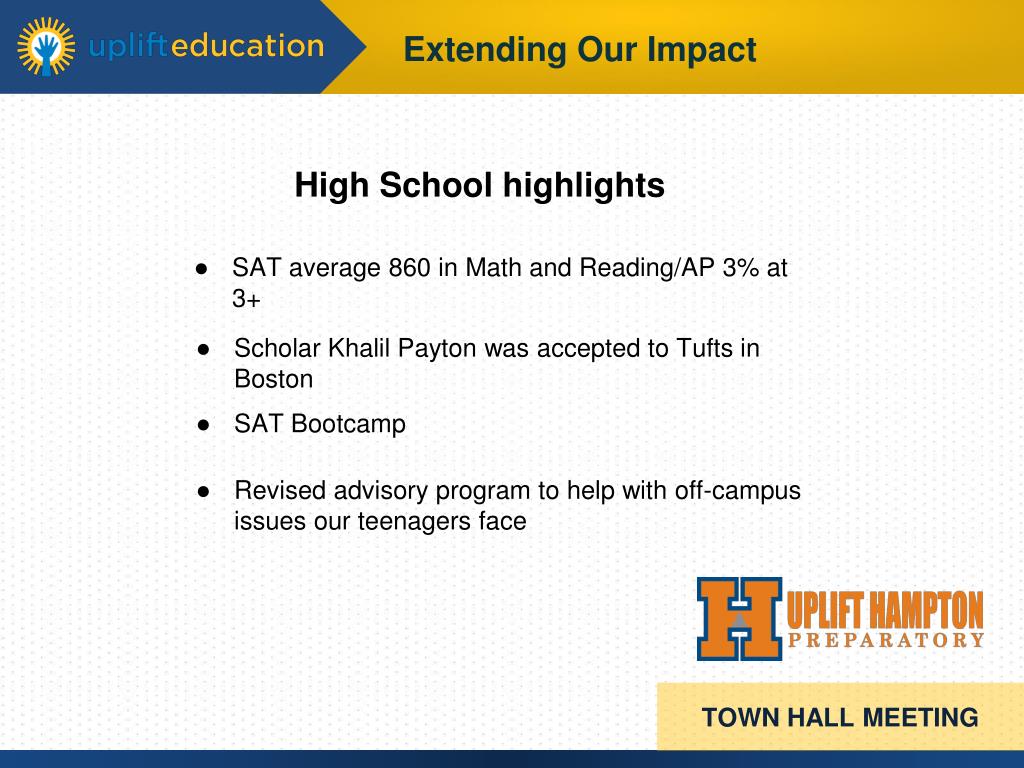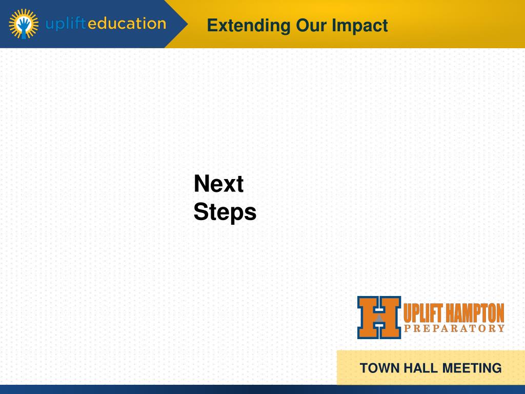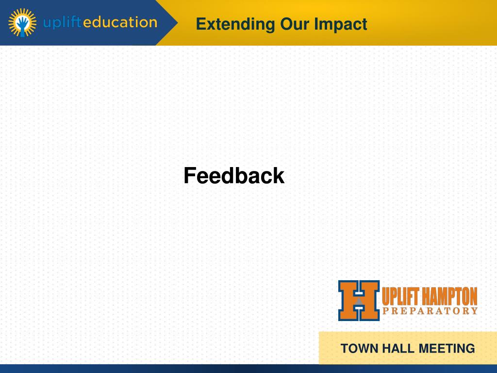 Important Uplift network priorities Employee recruiting and retention Family Engagement College Readiness TOWN HALL MEETING