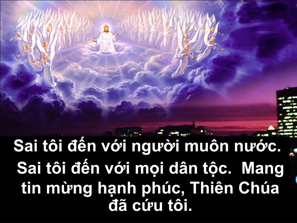 Sai tôi đến với người muôn nước. Sai tôi đến với mọi dân tộc. Mang tin mừng hạnh phúc, Thiên Chúa đã cứu tôi.
