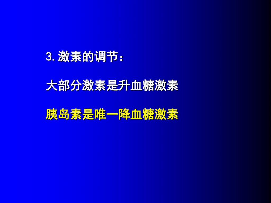3.激素的调节:大部分激素是升血糖激素胰岛素是唯一降血糖激素3.激素的调节:大部分激素是升血糖激素胰岛素是唯一降血糖激素