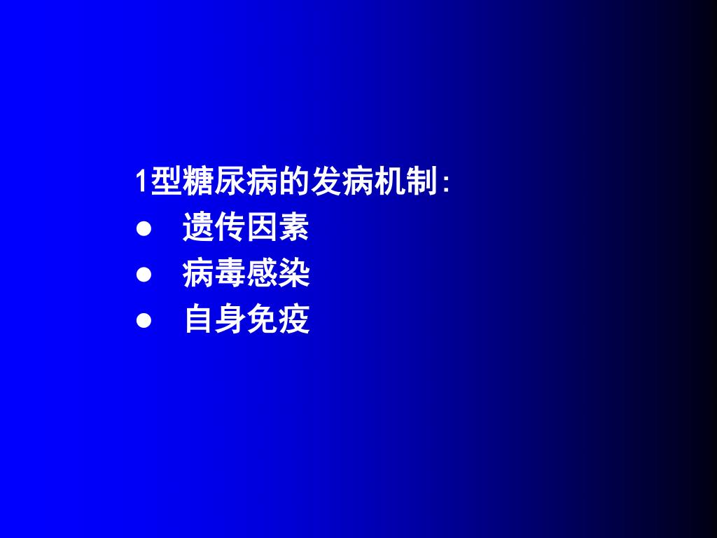 1型糖尿病的发病机制: • 遗传因素 • 病毒感染 • 自身免疫