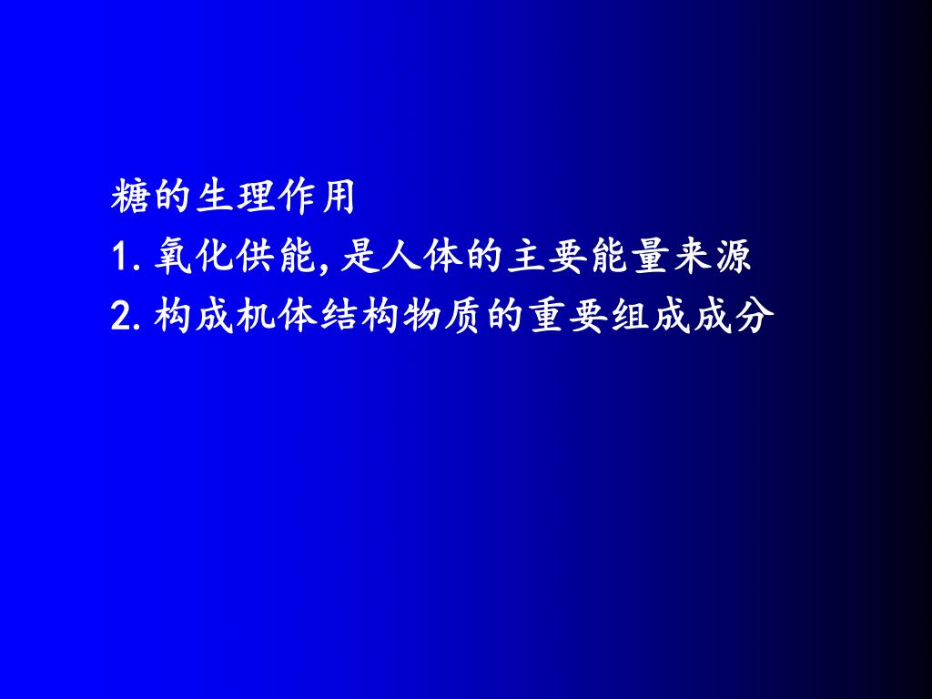 糖的生理作用 1.氧化供能,是人体的主要能量来源 2.构成机体结构物质的重要组成成分
