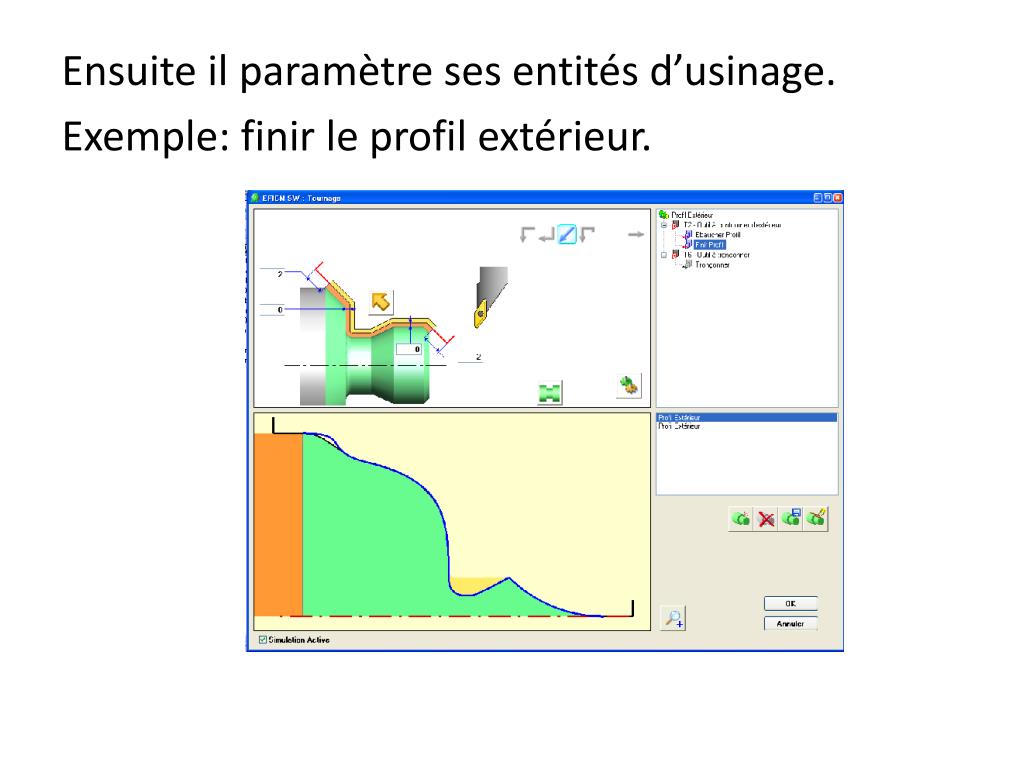 Ensuite il paramètre ses entités d’usinage. Exemple: finir le profil extérieur.