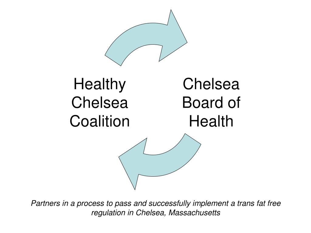 Healthy Chelsea Coalition Chelsea Board of Health Partners in a process to pass and successfully implement a trans fat free regulation in Chelsea, Massachusetts