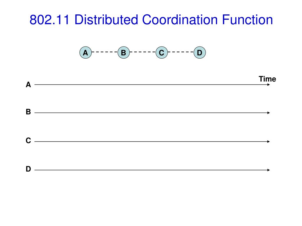 802.11 Distributed Coordination Function A B C D Time A B C D