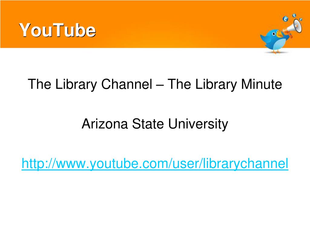 YouTube The Library Channel – The Library Minute Arizona State University http://www.youtube.com/user/librarychannel