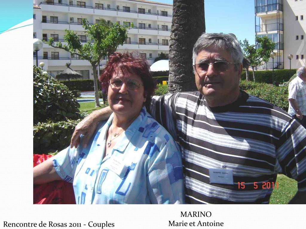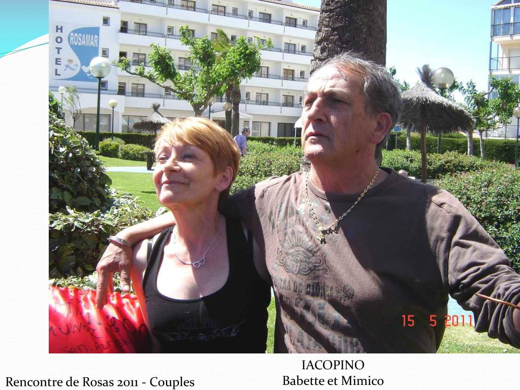 de la lettre H à N inclue. Photos de Pierre Lacroix. HAJAS-GONZALES Francine et Emilie PUECINI-GONZALES. Rencontre de Rosas 2011 - Couples. HAMON Jean-Claude et Christine. Rencontre de Rosas 2011 - Couples. HEREDIA Gilbert. Rencontre de Rosas 2011 - Couples. IACOPINO