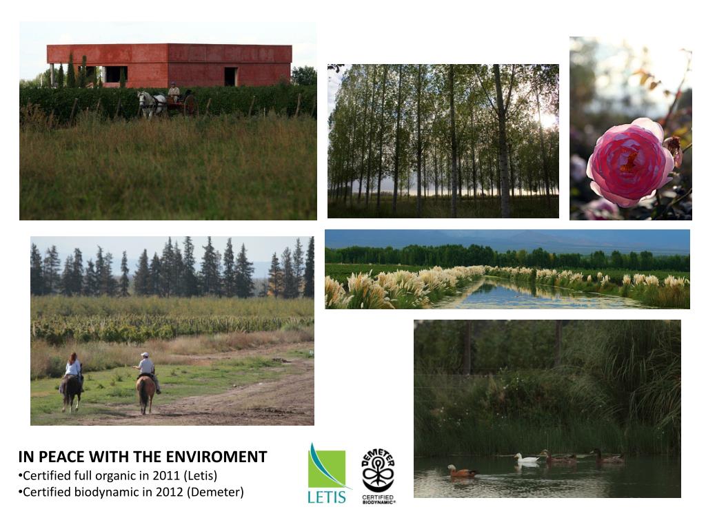 IN PEACE WITH THE ENVIROMENT • Certified full organic in 2011 (Letis) • Certified biodynamic in 2012 (Demeter)