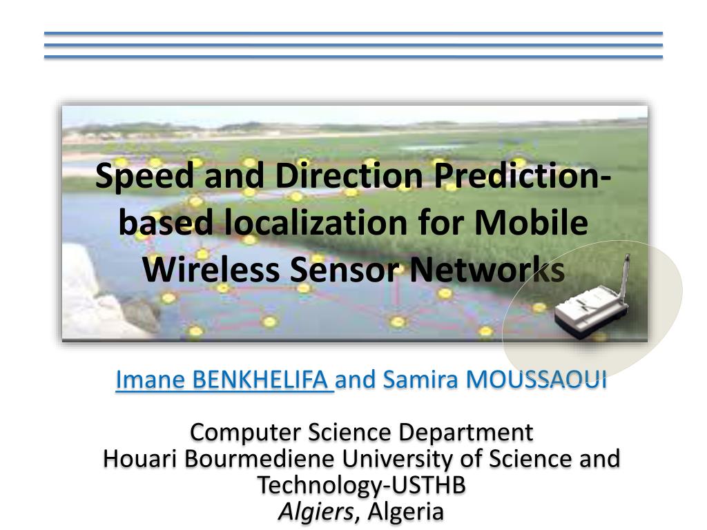 Speed and Direction Prediction-basedlocalization for Mobile Wireless Sensor Networks • Imane BENKHELIFA and Samira MOUSSAOUI • Computer Science Department • HouariBourmediene University of Science and Technology-USTHB • Algiers, Algeria
