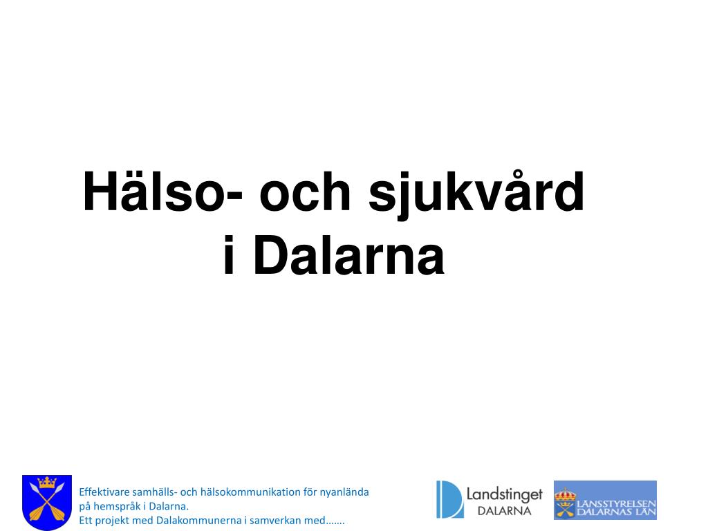 Hälso- och sjukvård i Dalarna. Effektivare samhälls- och hälsokommunikation för nyanlända på hemspråk i Dalarna. Ett projekt med Dalakommunerna i samverkan med……. Det finns 18 Landsting i Sverige Dalarnas Landsting ansvarar för sjukvården i våra 15 kommuner.