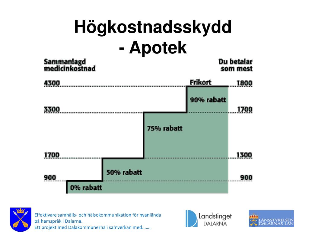 Högkostnadsskydd- Apotek Effektivare samhälls- och hälsokommunikation för nyanlända på hemspråk i Dalarna. Ett projekt med Dalakommunerna i samverkan med…….