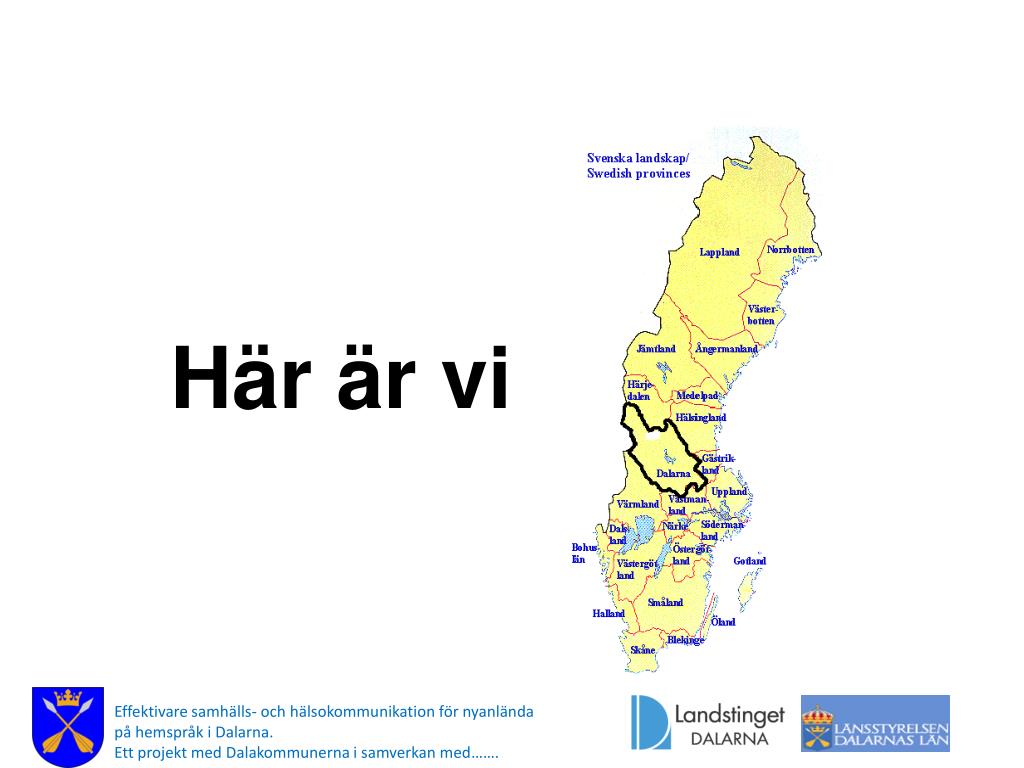 Här är vi Effektivare samhälls- och hälsokommunikation för nyanlända på hemspråk i Dalarna. Ett projekt med Dalakommunerna i samverkan med…….