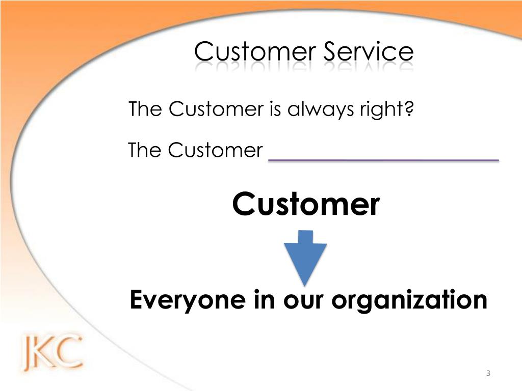Customer Service The Customer is always right? has the right to be the… The Customer Customer Everyone in our organization