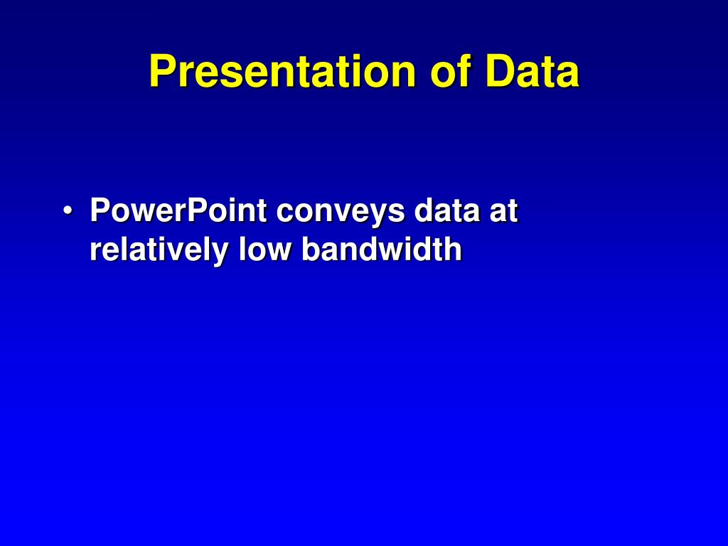 Presentation of Data • PowerPoint conveys data at relatively low bandwidth
