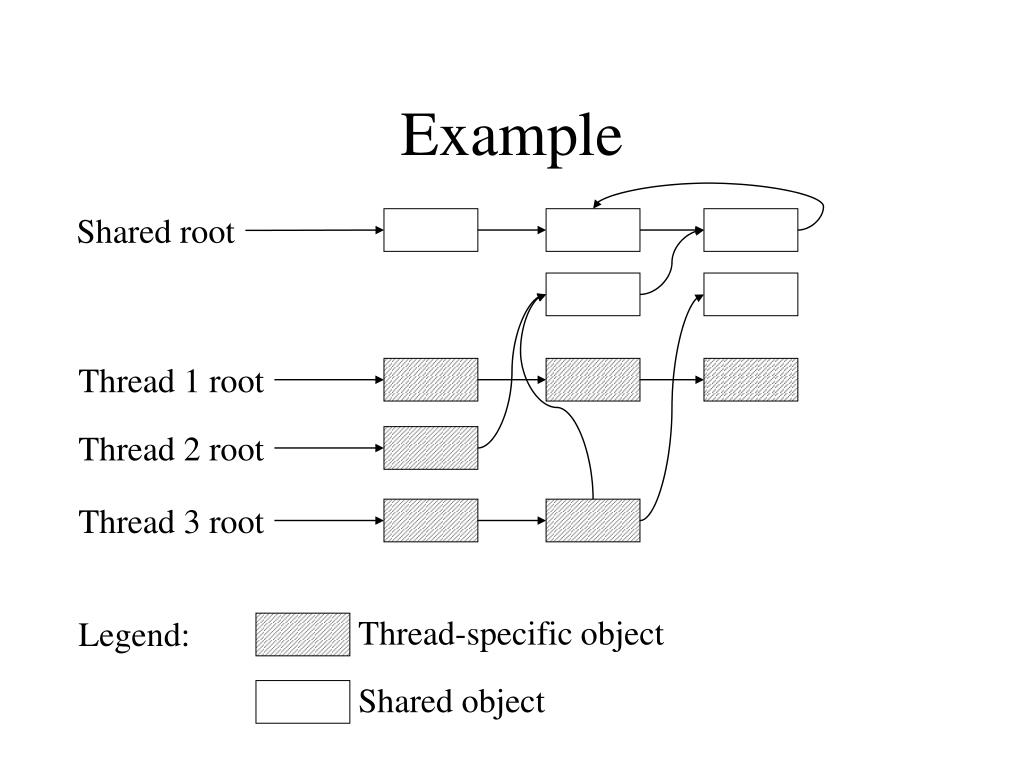 Example Shared root Thread 1 root Thread 2 root Thread 3 root Thread-specific object Legend: Shared object