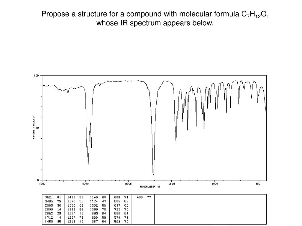 Propose a structure for a compound with molecular formula C7H12O, whose IR spectrum appears below.