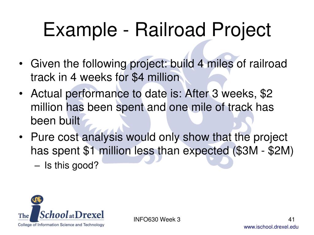 Example - Railroad Project EAC BAC INFO630 Week 3